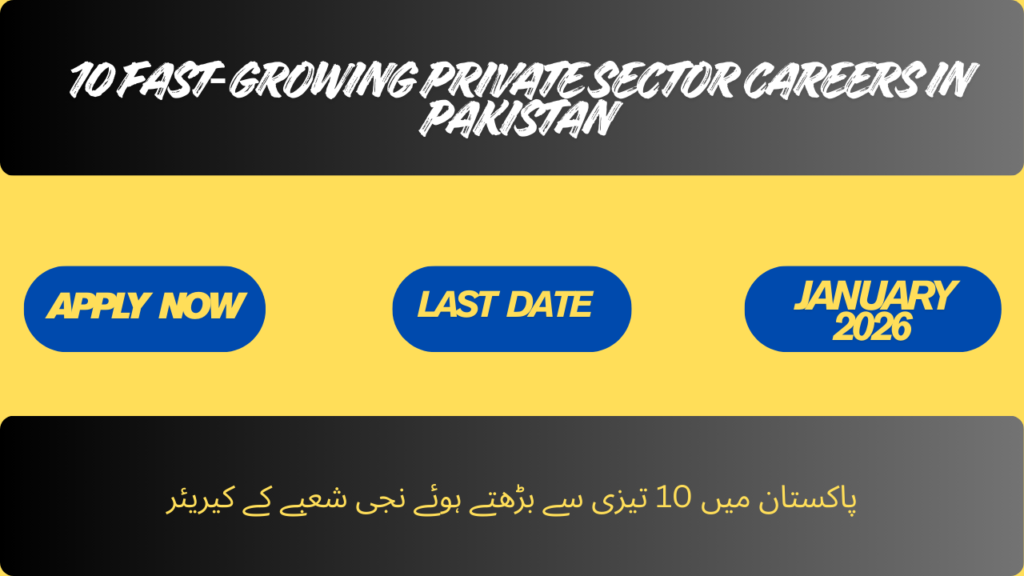 The private sector in Pakistan is expanding rapidly, offering a variety of careers with high growth potential and competitive salaries. Industries such as information technology, finance, marketing, healthcare, and engineering are leading this growth, creating opportunities for young professionals to build rewarding careers. Fast-growing careers in the private sector often provide not only financial benefits but also professional development, skill enhancement, and exposure to modern workplace technologies and global standards. For ambitious graduates, these roles offer the chance to make a significant impact while advancing quickly in their chosen field.